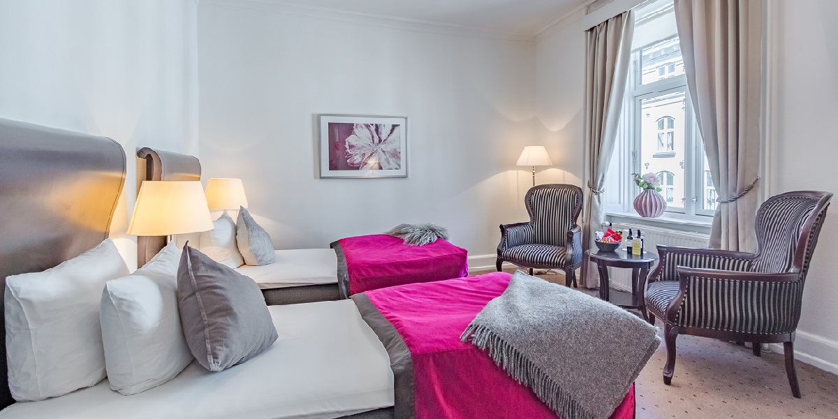 Hotellet råder over 99 værelser, som er holdt i klassisk stil ligesom selve bygningen, der blev opført som hotel i 1899. Vi renoverer løbende, så alle værelser og fællesområder fremstår friske.