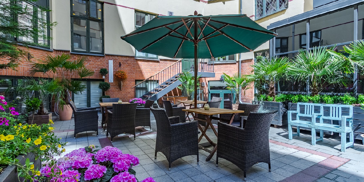 Benyt gerne vores hyggelige lounge og dejlige gårdhave til at slappe af i eller til en sammenkomst.