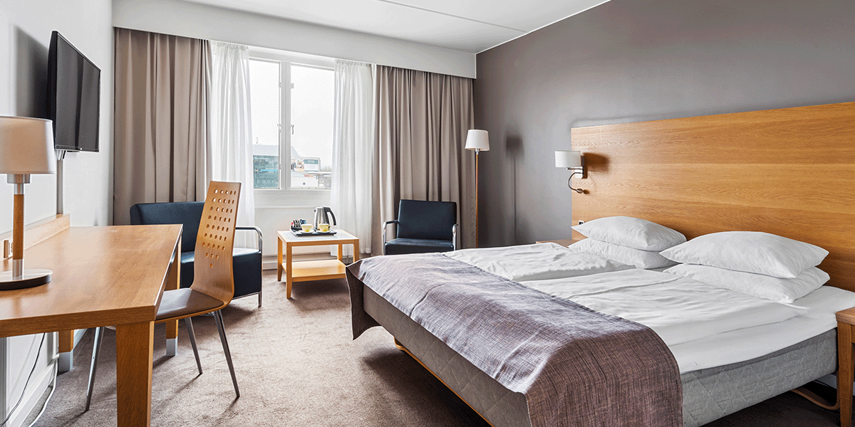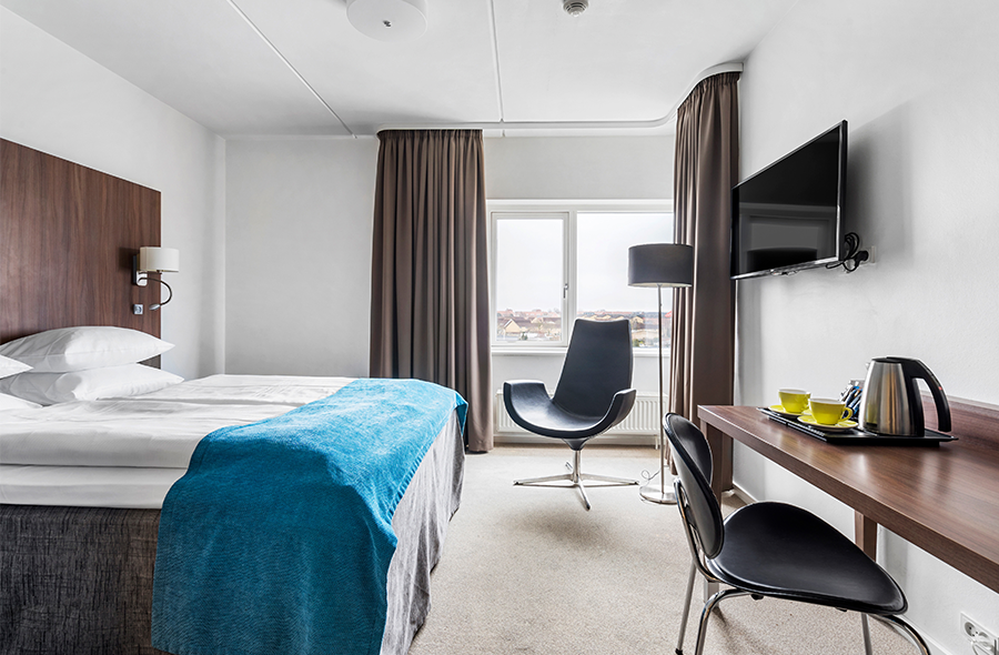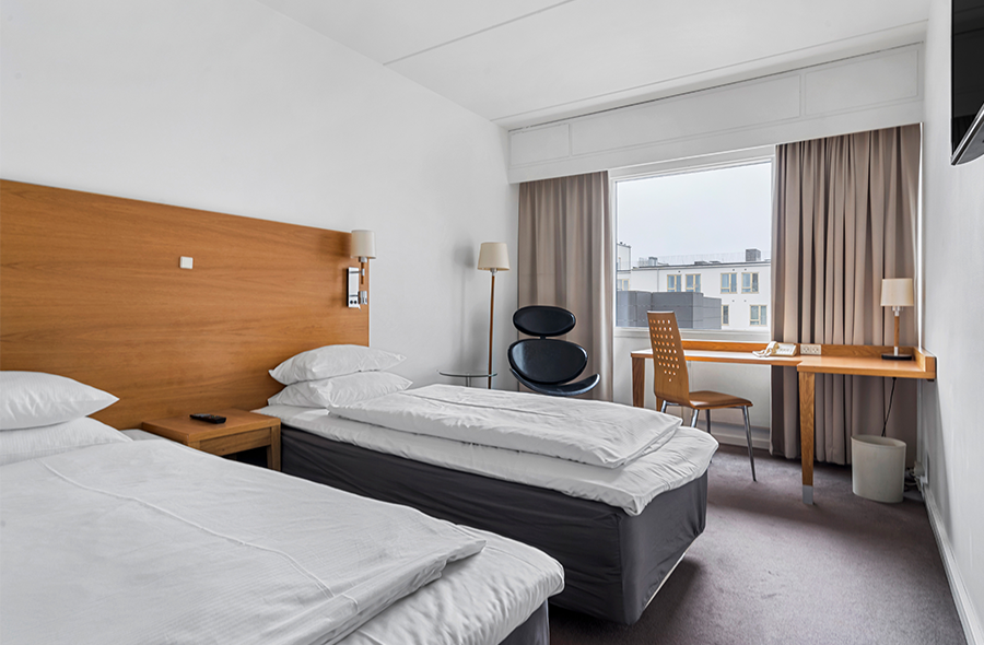 Vælg mellem hotellets 295 værelser, som er fordelt på 6 kategorier og nyd blandt andet faciliteter som gratis trådløst internet med høj hastighed, adgang til både fitnesscenter og swimmingpool. Den strømlinede skandinaviske stil er befordrende for fred og afslapning.