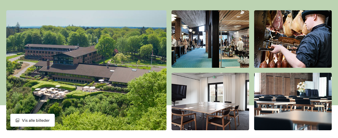 Mindre billeder vises i galleriet nederst på siden. Ideelt skal I uploade minimum 5–6 billeder til slideren foroven og minimum 10 billeder til galleriet nederst på siden: