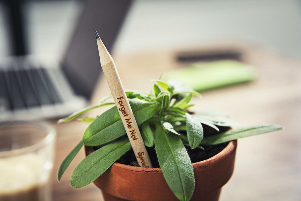 Sprout-blyanten er lavet af bæredygtigt PEFC eller FSC certificeret cedertræ. Den inderste del af blyanten består af en blanding af ler og granit, og den indeholder derfor ikke bly. Kapslen indeholder blomster- eller krydderifrø, som ikke indeholder GMO’er (genetiske modificerede organismer). Blyanterne kan indgraveres med virksomhedslogo eller et personligt budskab. Brug blyanterne til din konference; efter brug plantes de i jord, og et minde om konferencen vokser frem.