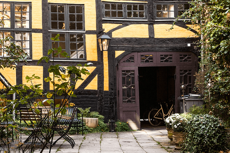 Private møde- og kursuslokaler i en aflukket gård uden offentlig adgang.