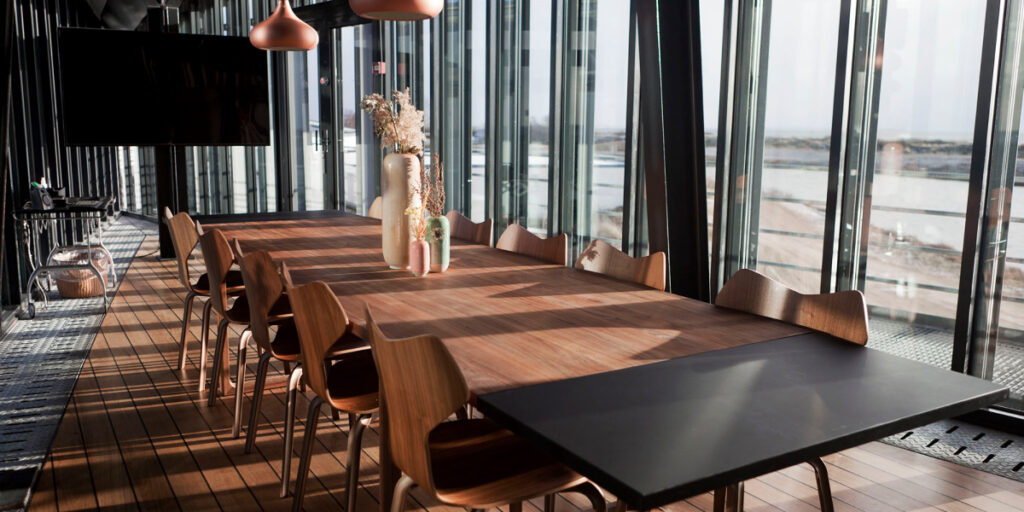 Foyerens høje lofter og direkte adgang til andre lokaler skaber en unik atmosfære til store receptioner eller konferencer, mens Caféen med sin maritime stemning og udsigt over Køge Bugt tilføjer en særlig charme til enhver begivenhed.
