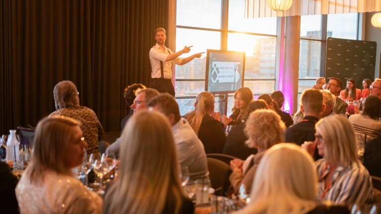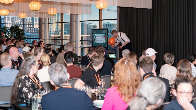 Om aftenen kulminerede dagen med en stemningsfuld Awards Dinner i det smukke banquetlokale “Østerbro” på øverste etage i CPH Conference. Her blev der serveret en udsøgt 100% vegetarisk middag med fokus på upcyclede råvarer, der blev skålet i bobler og fejret på tværs af branchen. Samtidig blev nogle af årets mest eftertragtede priser uddelt, herunder Danmarks Bedste Venue 2026 og Danmarks Stærkeste Venuebrand 2026.