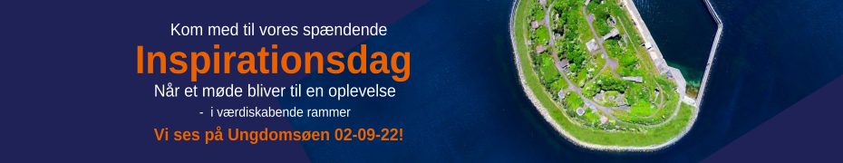 Tilmeld dig nu til årets Inspirationsdag fredag den 2. september på Ungdomsøen. Programmet er fyldt med spændende oplæg, sjove aktiviteter, icebreakers og masser af networking blandt andre mødeplanlæggere og repræsentanter fra de danske hoteller og konferencevenues i Danske Konferencecentre.
