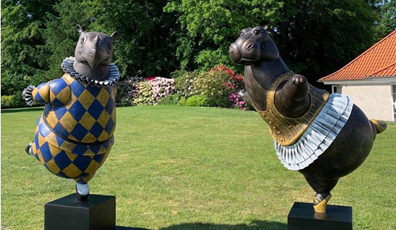 15 forskellige – primært danske – kunstnere har bidraget med i alt 36 værker og alt fra bronzeskulpturer, og store værker i sten, til 3 meter højre keramikvaser og dansende flodheste.