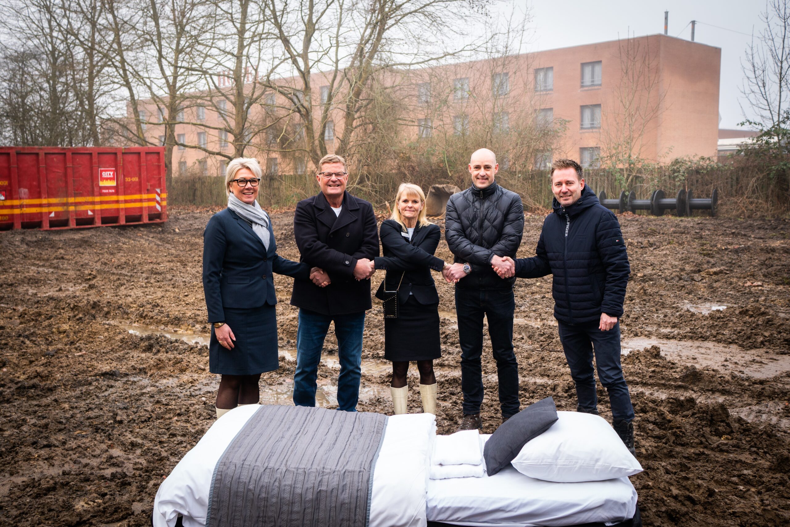 Murbrokkerne fra det gamle landsted ved siden af Odense Congress Center er knap blevet kørt væk, før entreprenørmaskinerne rykker ind mellem æbletræer og brombærbuske. Byggeriet af Odenses nye, største hotel er officielt i gang, og de første gæster forventes at tjekke ind i sommeren 2024.