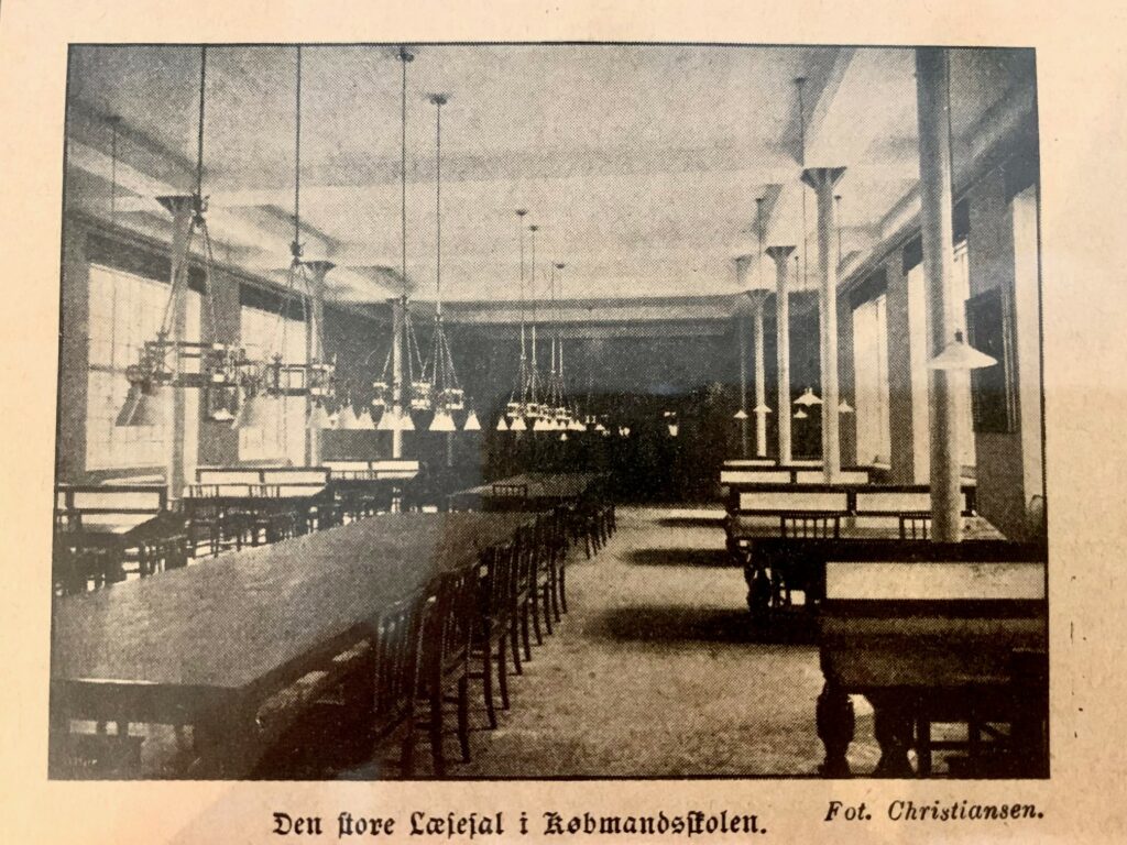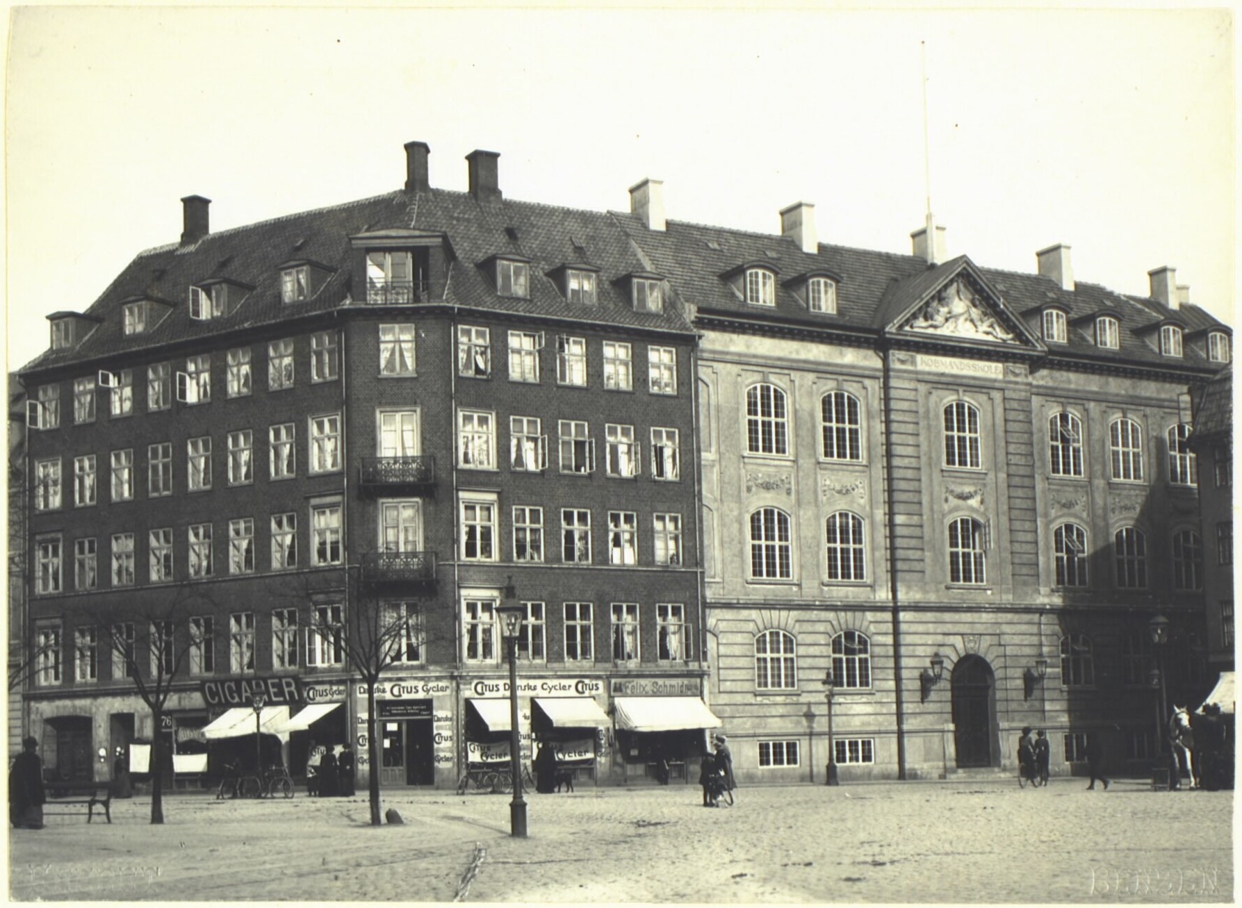Det kostede 900.000 af datidens kroner at bygge Købmandsskolen. Den imponerende palæbygning er på lidt over 6.000 m2 og danner med sin facon som et ”M” en ramme om to indre gårde. I den ene gård ligger Købmandsskolens medstifter og rådgiver Harald Fridericia (1848-1908) begravet.