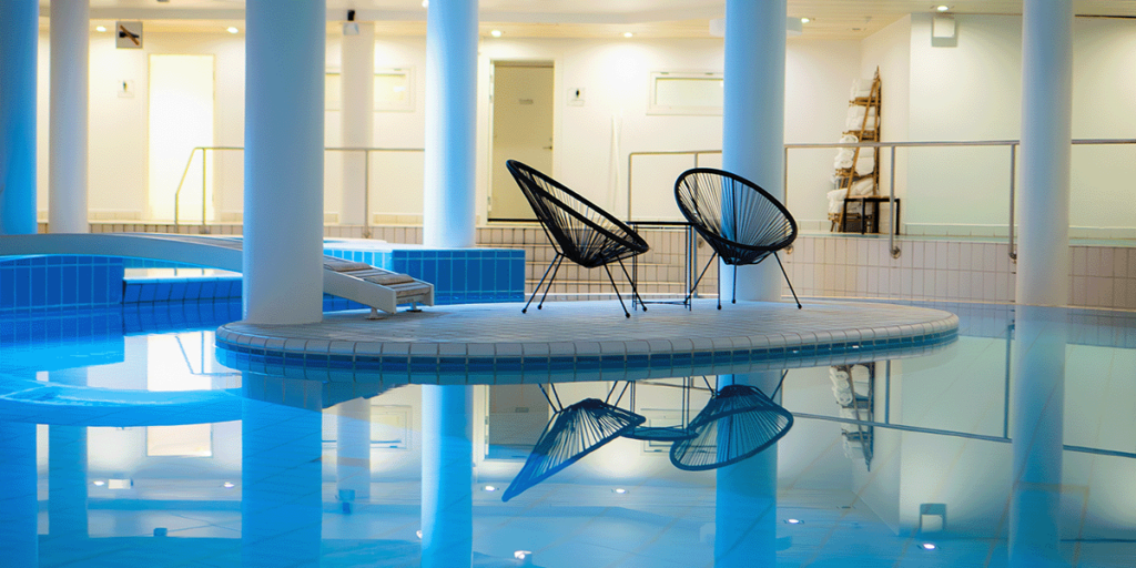 Spejl-salen har en minimalistisk og afslappende indretning, der indbyder til meditation og mindfulness – perfekt for dem, der vil tage en pause fra dagens stress og finde ro inden rejsen eller et vigtigt møde. Spejlsalen fører videre til træningsrum, hvor fitness og andet træning kan udøves. Ved poolområdet skaber nye møbler en indbydende atmosfære, hvor man kan nyde en rolig stund, mens man slapper af ved vandet.