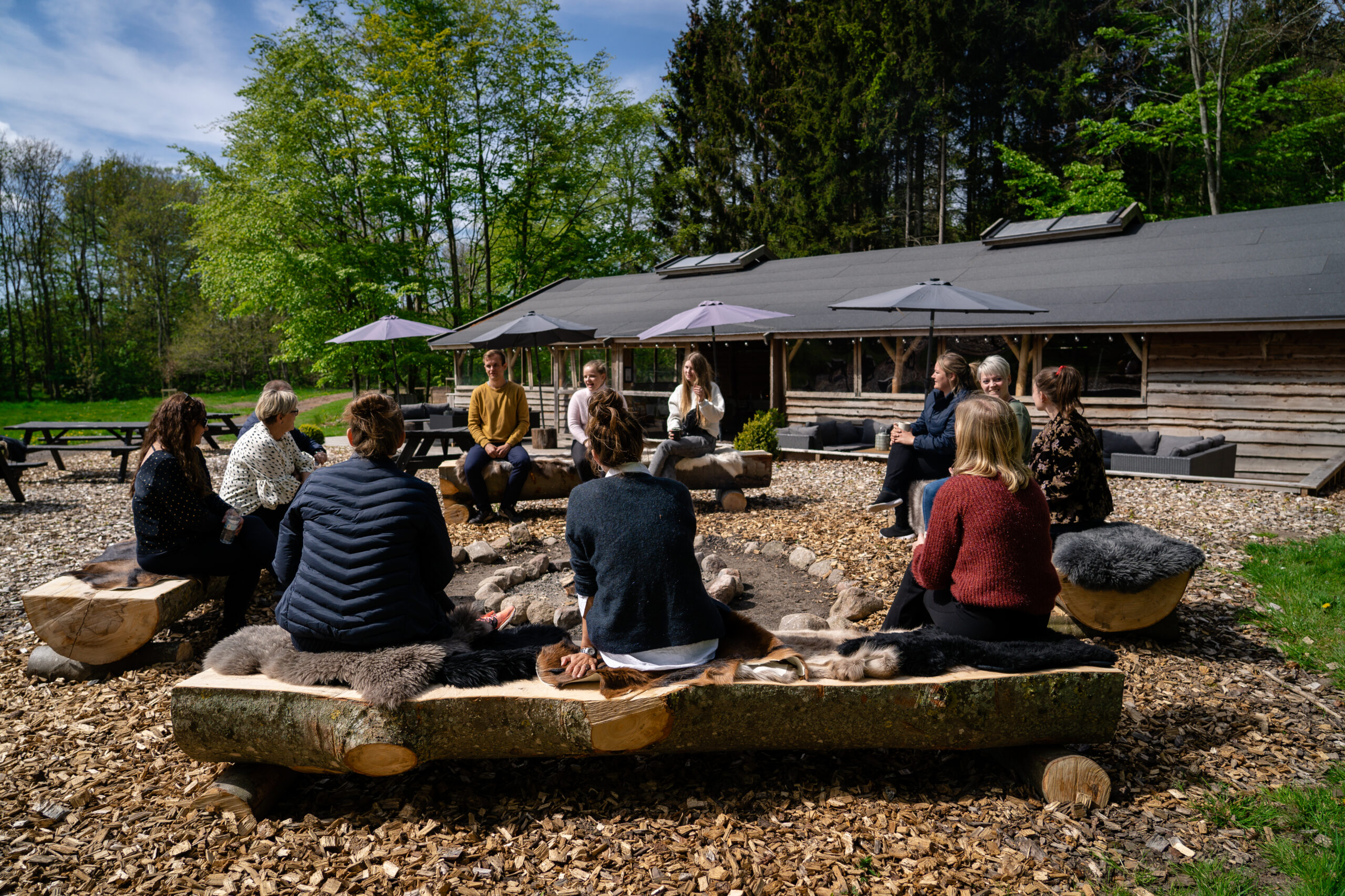 - NATURENS KLASSELOKALE – med højt til himlen og omgivet af store bøgetræer, bålplads og sækkestolemiljø. Kan bruges som et dagslokale eller som et afbræk i konferencen. Wi-Fi og flipover tilgængelig.