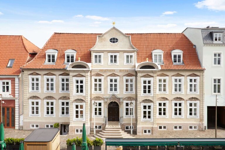Midt i Horsens, på byens levende gågade, ligger et sted, hvor historien ikke bare hænger på væggene – den mærkes, fra det øjeblik man træder indenfor. Jørgensens Hotel har hjemme i det smukke Lichtenbergske Palæ, som blev opført i 1744 af købmand og erhvervsmand Gehrdt de Lichtenberg. I dag danner de historiske sale og saloner rammen om ophold, møder, middage og særlige begivenheder i en atmosfære, der balancerer det elegante med det nærværende.