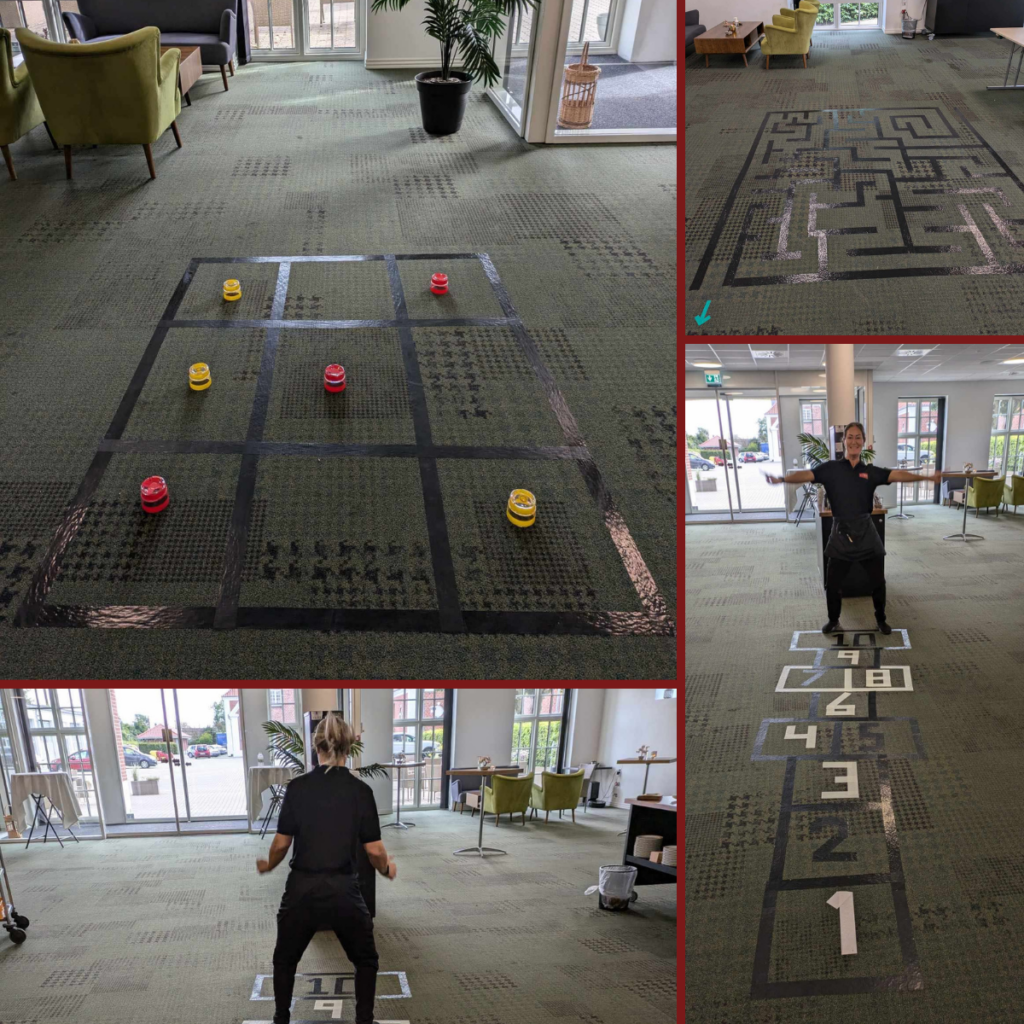 Derfor fik hotellets restaurantchef, Line, en genial idé: Når deltagerne holder pause i deres store hal, hvor der er kaffe, kage og en snak med kollegaerne, hvorfor så ikke tilføje lidt leg?