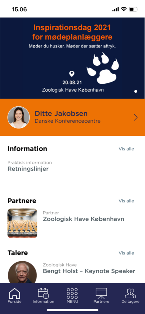 “Det betyder, at folk ikke behøver at skulle lede efter informationer. De er samlet lige ved hånden på vores telefon, som vi altid har på os. En eventapp er en god måde at holde deltagerne informeret og giver let adgang til programmet, information om talerne og mulighed for at se, hvem der ellers deltager samt skabe et fællesskab, der giver dig mulighed for at oprette forbindelse til andre deltagere”.