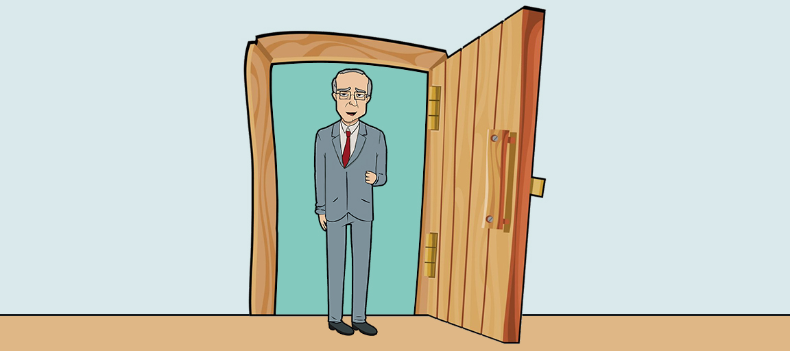 Alle vendte sig og fik øje på manden i det grå jakkesæt, der nu stod i døråbningen. En ældre herre med briller og grå hår på toppen.