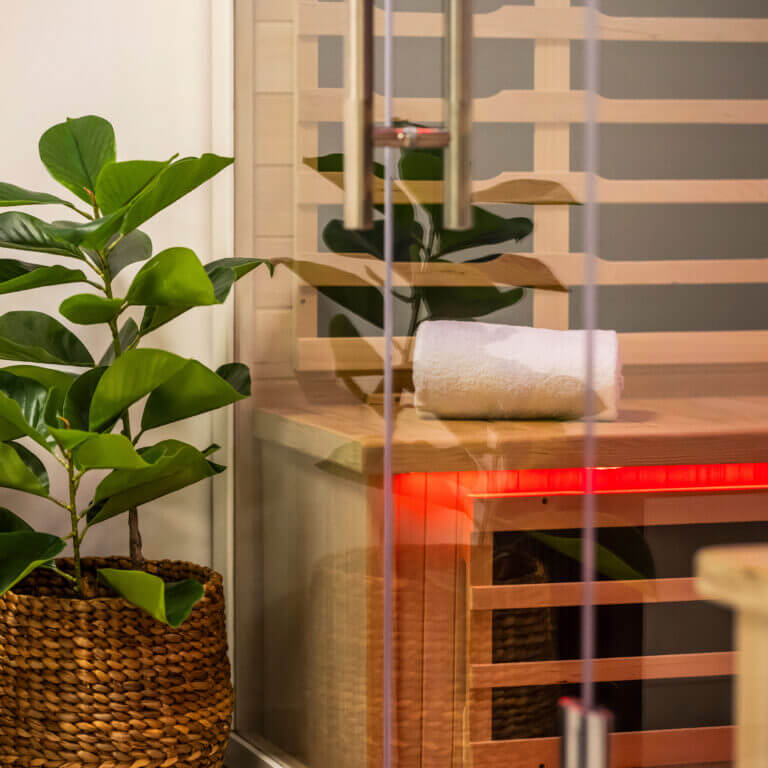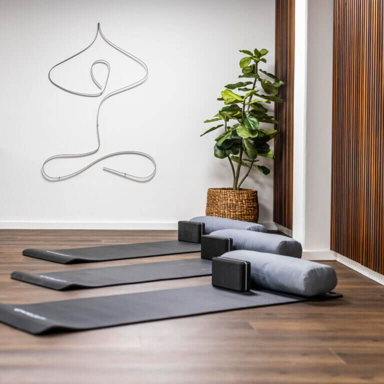 Ved siden af Loungebaren ligger et stemningsfuldt Vinotek med nøje udvalgte vine fra hele verden – oplagt til smagninger eller afslappede samtaler i rolige rammer. Underetagen rummer desuden et moderne fitnessområde med alt fra cardio- til styrketræningsmaskiner, vægte, kettlebells mm., rummelige omklædningsfaciliteter, et dedikeret yogarum og en infrarød sauna – ideelt til både fysisk aktivitet og mental restitution.