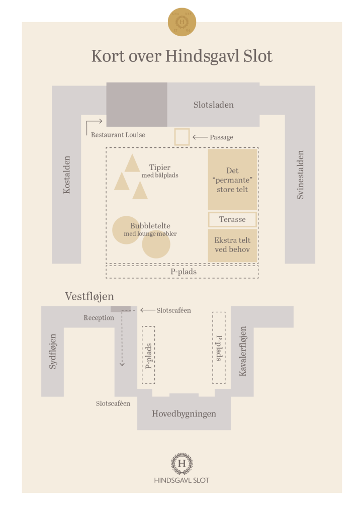 På Hindsgavl Slot er den grønne gårdsplads forvandlet til det ultimative fest- og event setup, hvor business og pleasure smelter sammen i en stemningsfuld symbiose. Fra marts til september er der opstillet et stort telt, en tipi og hyggelige cone-telte, som virksomheder kan booke til alt fra sommerfester og kickoffs til udstillinger og koncerter. Med overdækket adgang til Tranesalen i Slotsladen åbner det nye venue op for et væld af fleksible muligheder – uanset om man ønsker at kombinere fagligt indhold med fest eller samle hele virksomheden til et brag af en aften.