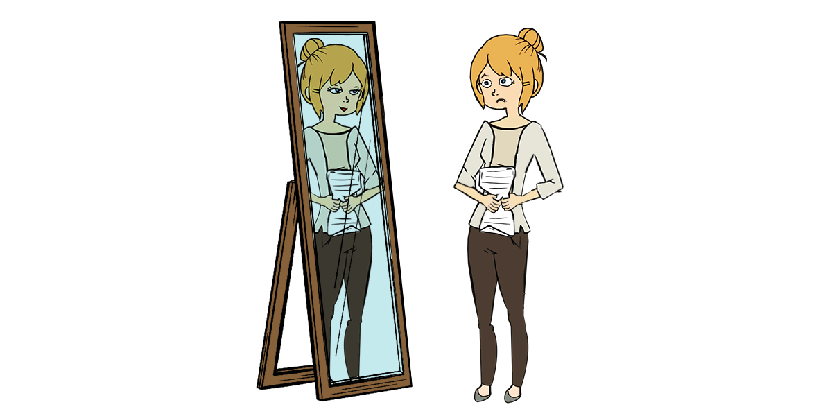 Snart faldt Tine i staver foran spejlet. Hun tænkte på mødet og alle sine oplevelser med det – både gode og dårlige – men nok mest de dårlige. Og så fik hun øjenkontakt med sig selv igen.