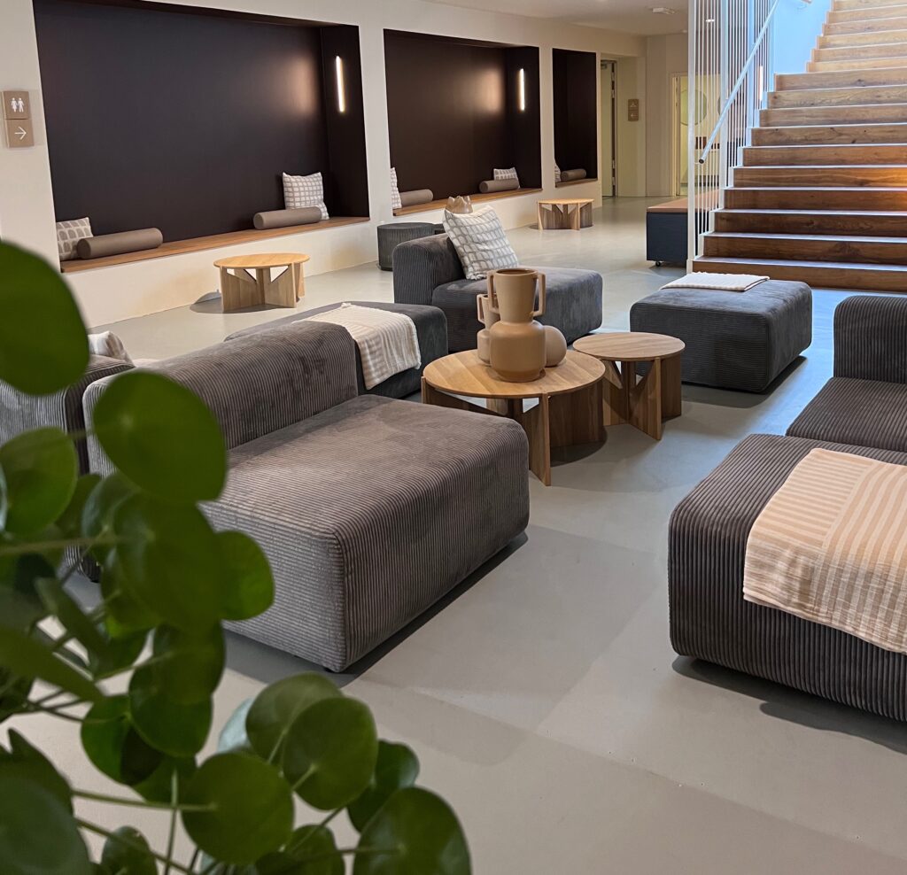 Hun fortsætter: ”Vi har igennem mange år, haft en god ekstern samarbejdspartner, som har lært os, vores drift og slitage at kende, så de kan give os kvalificeret sparring til valg af de bedste løsninger. De er tilmed meget opmærksomme på, hvordan vi kan genbruge og anvende eksisterende interiør på nye måder, og bringe naturen mere i spil – for at understrege vores placering – og sammen har vi skabt nogle rammer, som alle forhåbentlig kan føle sig hjemme i.”
