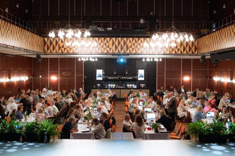 Eftermiddagen sluttede af med en dejlig cool down og kolde drikkevarer fra Vinhanen. Aftenen bød på en dejlig middag af Gas Op teamet i de smukke rammer i salen Store Vega, hvor Nikolaj Muldkjær fortryllende fortalte om koncerthusets historie. Som prikken over Iét spillede artisten BABBYBITES op til dans i Ideal Bar i Vega – og sikrede at alle kom med på beatet.