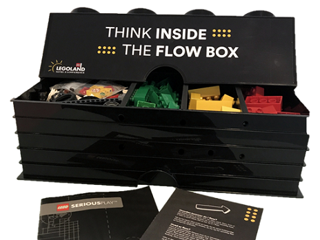 LEGOLAND Hotel & Conference har indgået et samarbejde med mødeeksperterne Ann Hansen og Bo Krüger om udviklingen af The Flow Box, der hjælper med at skabe flow hos mødedeltagere og dermed bedre møder. The Flow Box indeholder LEGO® basis byggematerialer til en LEGO® SERIOUS PLAY®session til bl.a. opbygning af metaforer, kreative og fantasifulde historier, problemløsning mv. samt en vejledning med beskrivelse af trin til både facilitering og flowmåling.