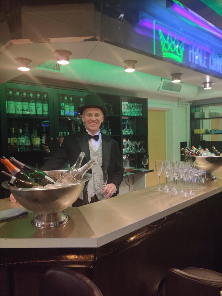 Kl. 17.50 – Bobler m. appetizer, velkomst v. Hoteldirektør Einar Kring og derefter Kongens nytårstale