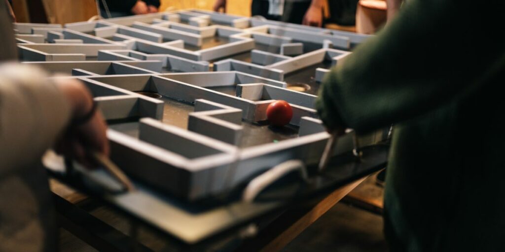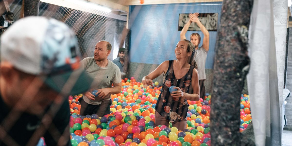 Anders: “Vores nye aktivitetsloft er meget populært og drives af Teak-gruppen. Vi har 5 aktiviteter, hvor hold dyster mod hinanden. Én af øvelserne er et kæmpe puslespil på 3 x 3 meter og en anden aktivitet er, hvor man skyder med røde og blå bolde. I kan kombinere aktiviteterne med strategi og medarbejderudvikling. Blandt andet kan øvelserne kobles til DISC profiler, hvor instruktørerne giver jer en kort analyse af jeres DISC profiler på holdet. Hvem er f.eks. I´er og reagerer derfor således? Dette er virkelig brugbart for virksomheder og gør alle deltagere bedre til at kommunikere med hinanden.