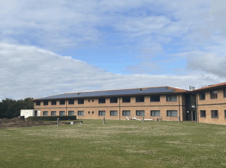 Når det nye solcelleanlæg er fuldt installeret og tilsluttet, vil det producere cirka 108.000 kWh strøm årligt. Det svarer til 15,57 % af det samlede elforbrug på Trinity i 2024. En betydelig andel – og nok til at dække en stor del af strømmen i konferencelokaler og fællesområder.