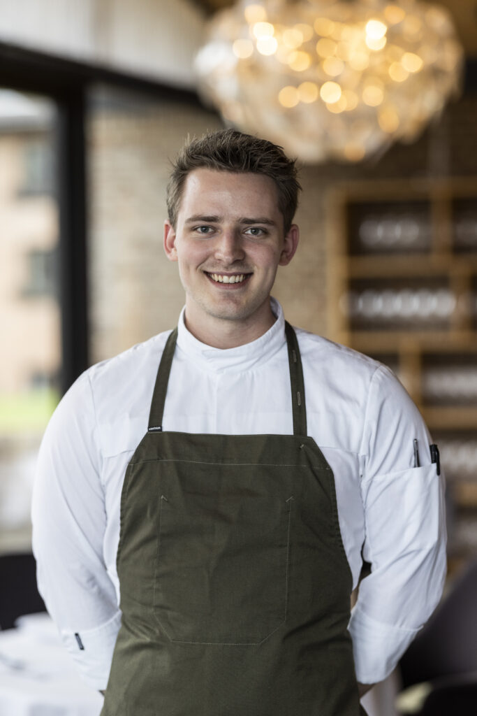 Den 22-årige kok nyder at være tilbage i Treetop efter syv måneder med konstant træning forud for Bocuse d’Or Europe: “Det er dejligt at lave rigtigt mad til rigtige gæster igen. Når vi træner til Bocuse d’Or, handler det jo mindst lige så meget om kunst som om mad.”