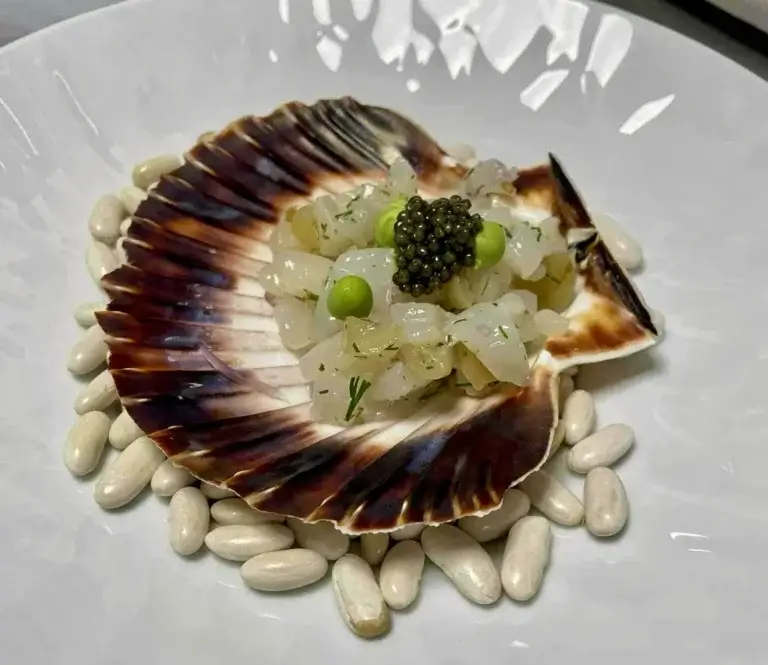 »Vores ceviche med kammusling, anrettet i selve kammuslingeskallen, er virkelig blevet et hit. Det er lækkert, og det er bare noget særligt at kunne præsentere sådan en ret for gæsterne.«