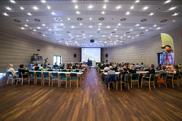 Den nye store Vingsal er også ideel til store arrangementer med god plads blandt deltagerne og kan også bruges til digitale møder. Salen har imponerende glaspartier, så gæsterne kan nyde en flot udsigt til den smukke natur.