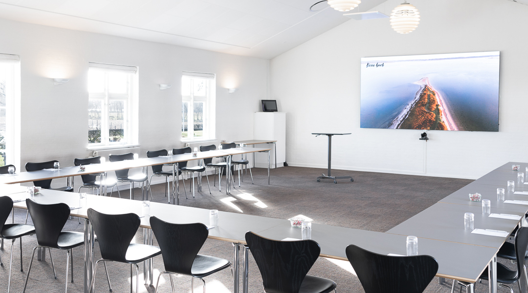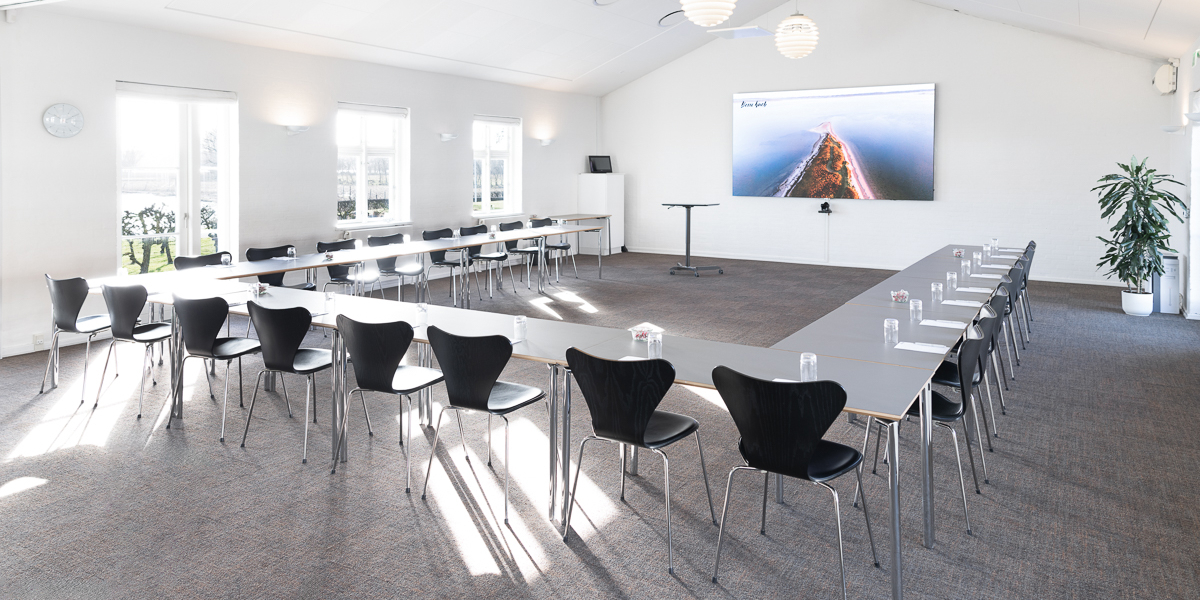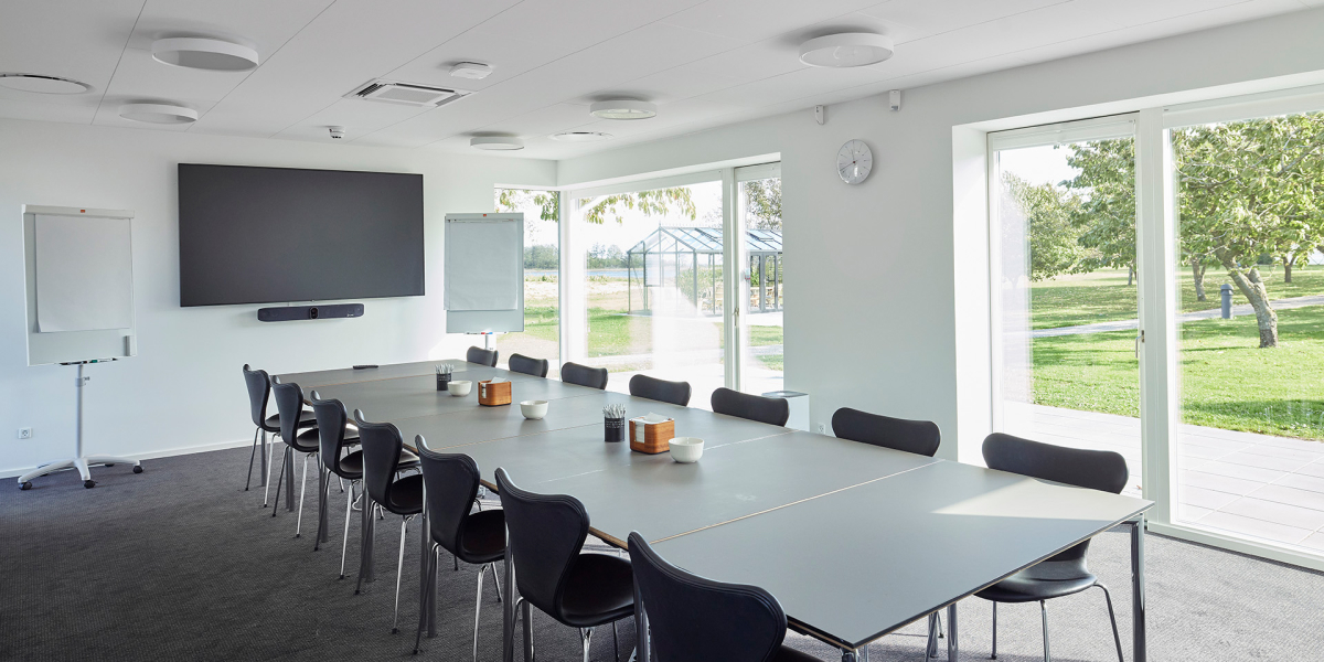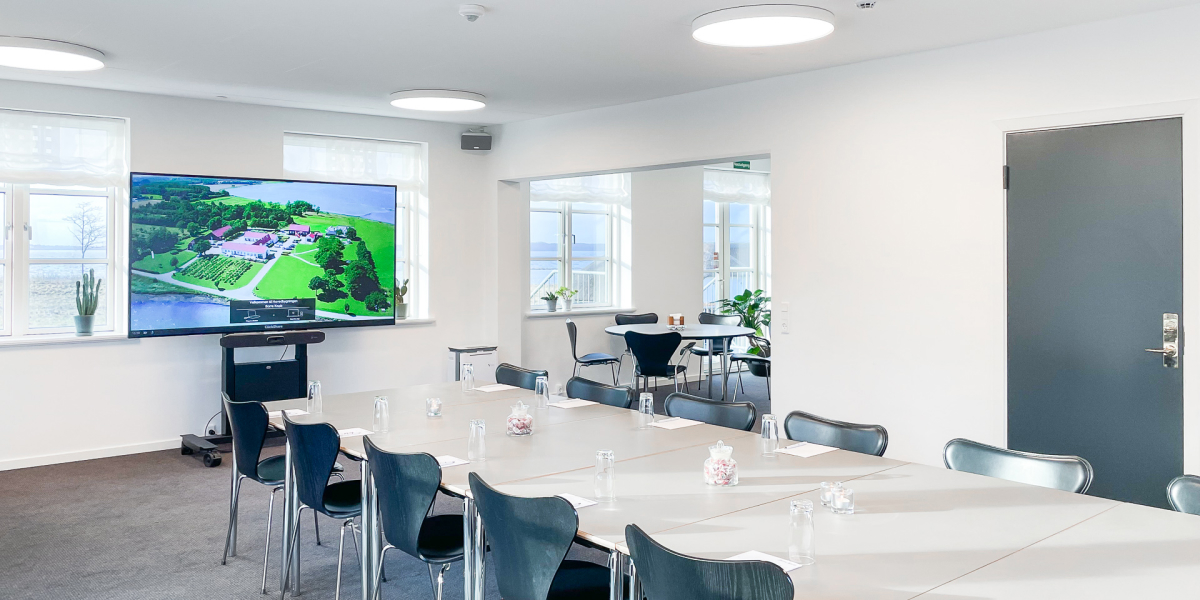 Moderne mødelokaler med alt i AV-udstyr. Til alle møder medfølger der fri kaffe og te, samt blokke og kuglepenne.