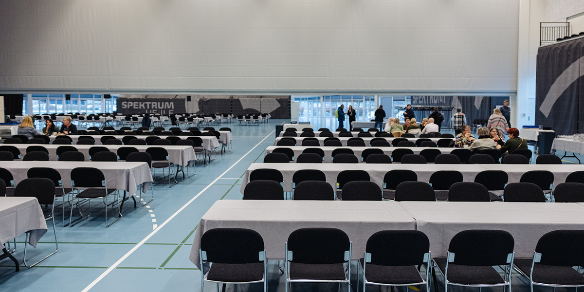 Særligt Spektrum, Hal 1 og Hal 4 er eftertragtede. I det største lokale kan vi have op til 2.300 gæster til bords og samtidig plads til scene, bar og dansegulv.