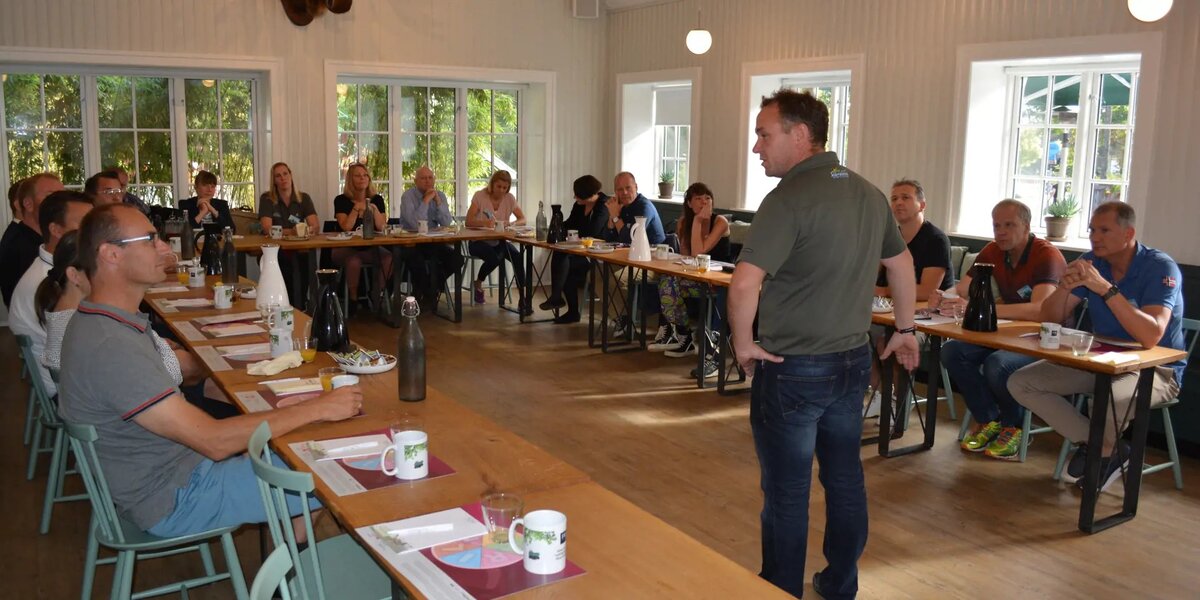 – Elgens Hule er et stort konferencerum på 90 m2 med plads til op til 75 deltagere, alt efter opstilling.