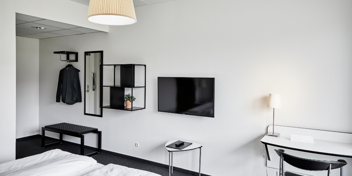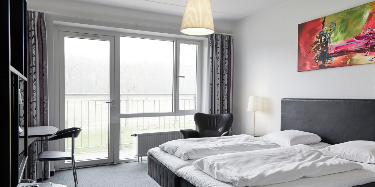 Her på Fjelsted Skov har vi 74 dobbeltværelser med bad, 40” fladskærms-tv og gratis trådløst 100 m/bit internetforbindelse. Alle vores værelser er stemningsfuldt indrettet og har balkon eller terrasse.