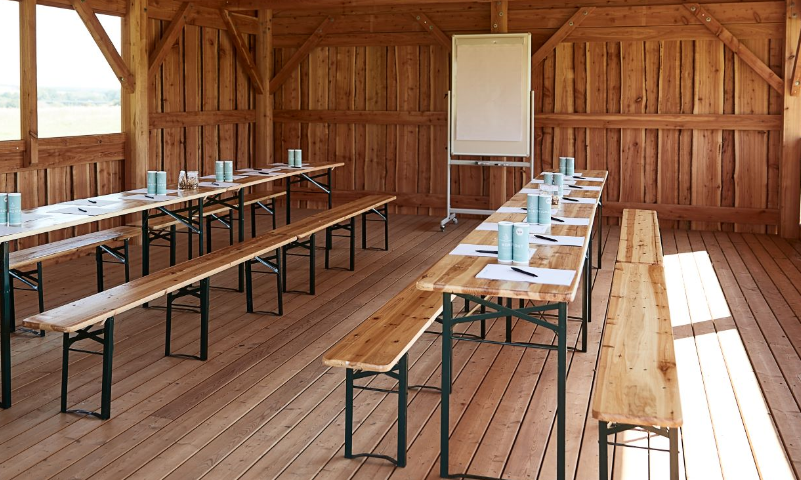 Vi har i foråret 2020 fået bygget "bålhytten" som kan lejes til møder (max. 25 personer).