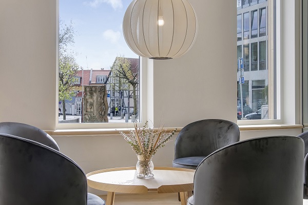 Hotel Svendborg er placeret i centrum af byen,  men med skov og strand i gå-afstand fra hotellet.