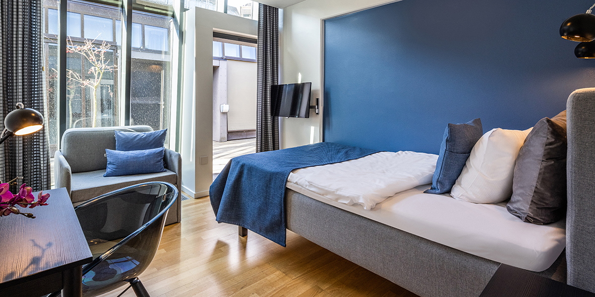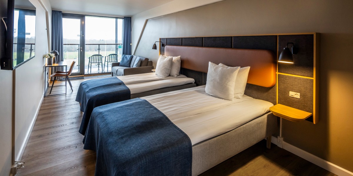 Vores 66 værelser er møbleret med en enkel og praktisk indretning, der inspirerer til afslapning eller opsamling af dagens arbejde. Alle enkeltværelser åbner døren til en hyggelig gårdhave, mens dobbeltværelserne har egne altaner med udsigt over boldbanerne, der omgiver hotellet og Brøndby Stadion. Vi har tilpassede værelser med særlig komfort og tilgængelighed, hvis du har et handicap, som kræver lidt mere plads i svingene.