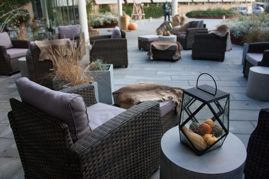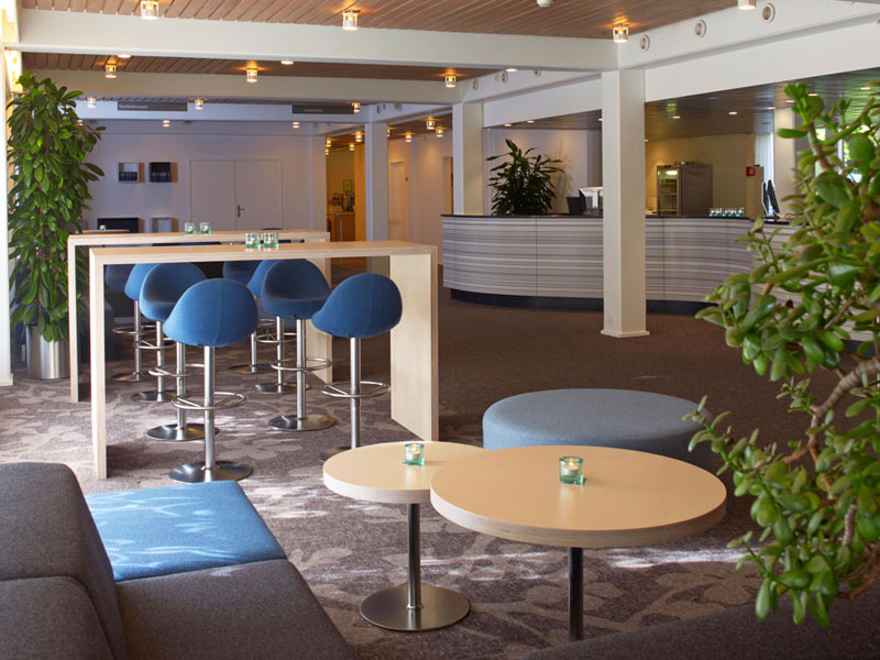 Loungebaren er et elegant samlingspunkt med bløde siddepladser og en afslappet atmosfære, hvor du kan nyde en rolig pause med en kop kaffe eller en forfriskning. Det er et oplagt sted til uformelle samtaler, netværk og hyggelige stunder mellem møderne.