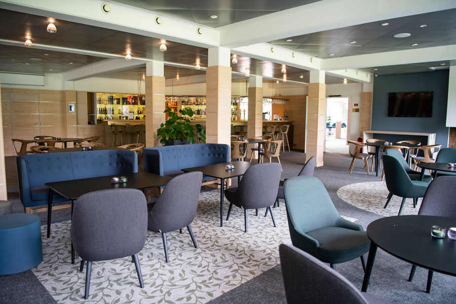 Den rummelige bar danner en perfekt ramme til en velkomstdrink inden middagen, eller som et naturligt mødested før eller efter dagens event.