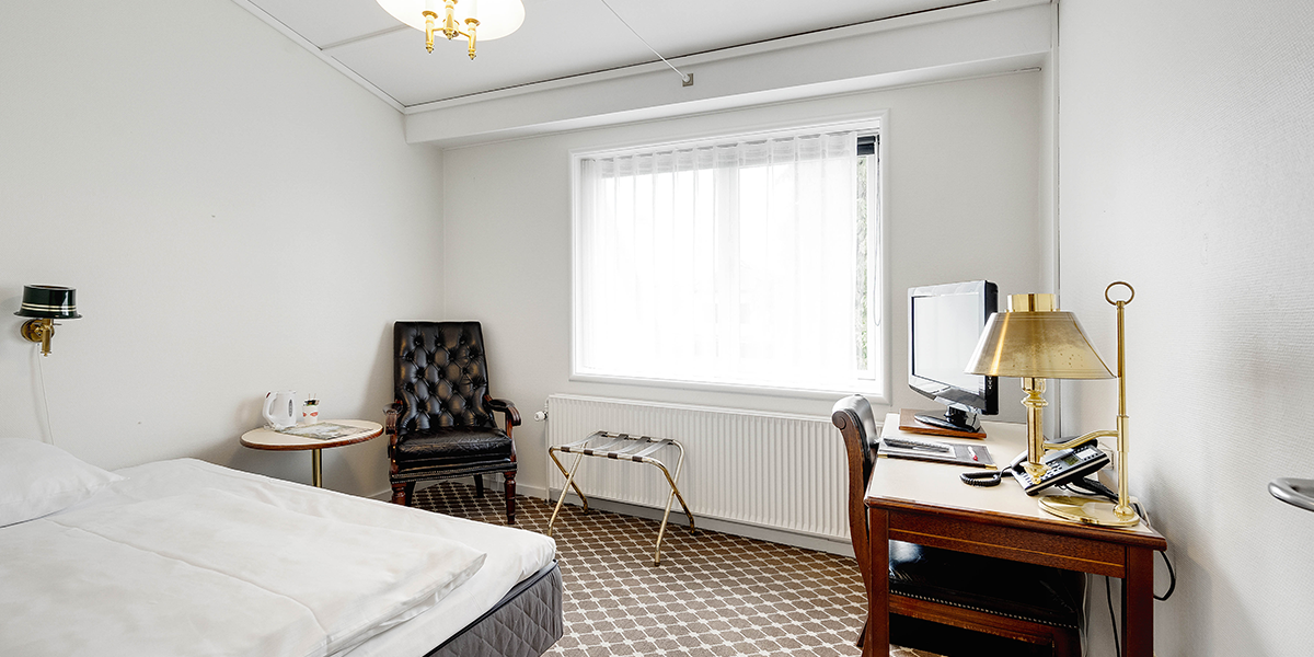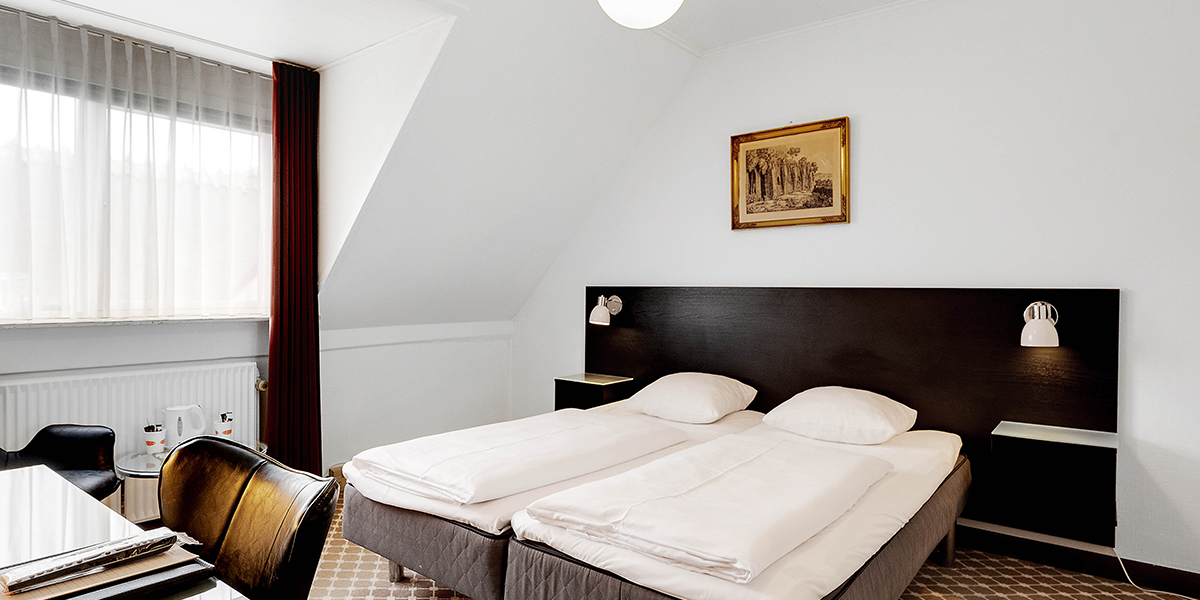 77 værelser fordelt på standard enkelt- og dobbeltværelser, comfort, business samt superior værelser. Alle værelser er indrettet i klassisk stil, og der er bad, toilet, minibar, telefon og fladskærms-tv. Vores tv har indbygget Chromecast, og der er ikkey derligere tv kanaler.