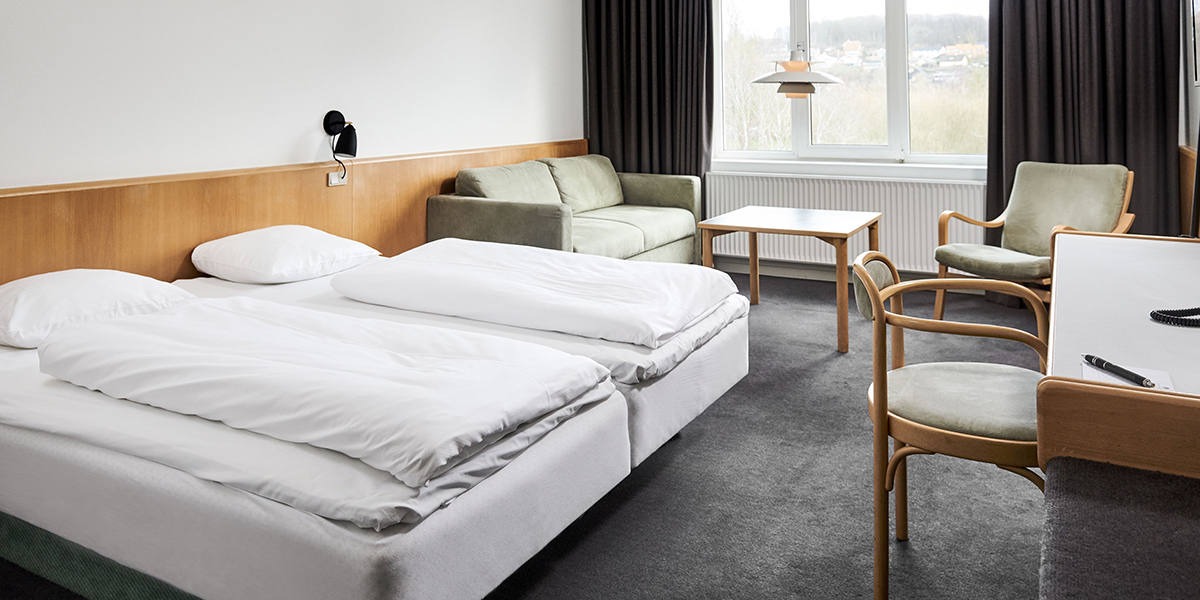 Alle værelser kan benyttes som både enkelt- og dobbeltværelse.