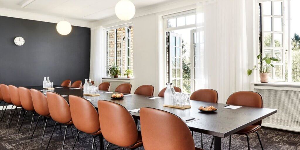 Mange af vores mødelokaler ligger desuden i naturskønne omgivelser, der skaber en rolig og inspirerende atmosfære. Dine deltagere kan nyde pauserne i smukke omgivelser, hvilket bidrager til en behagelig og afslappet stemning.