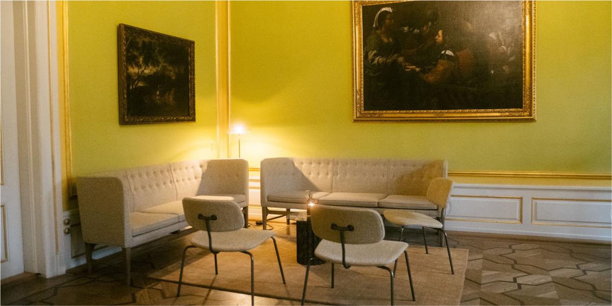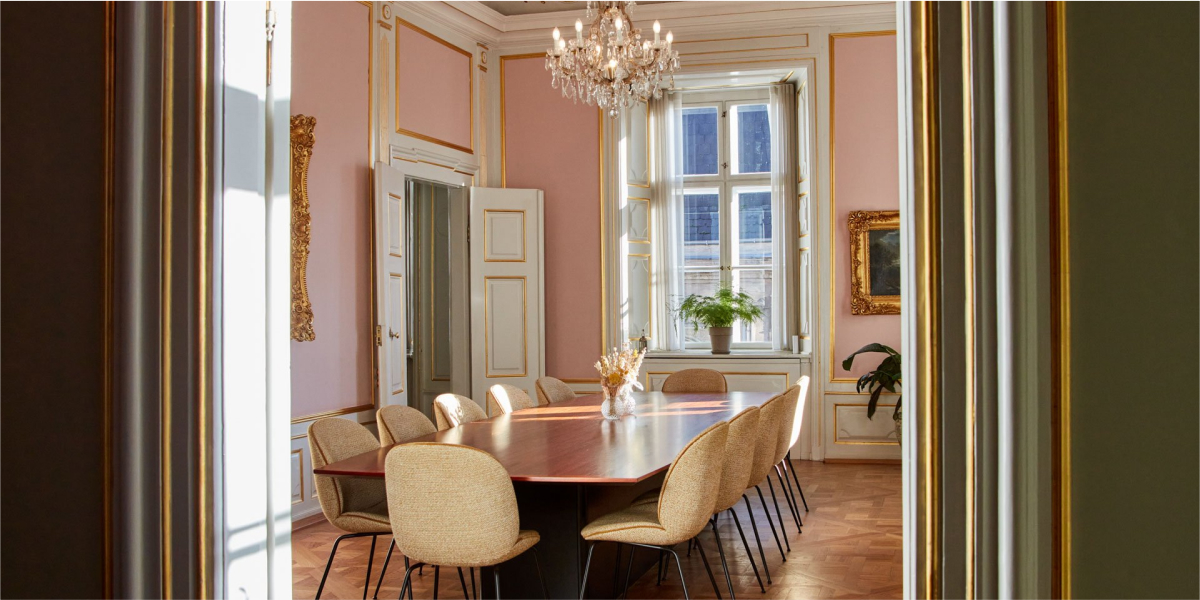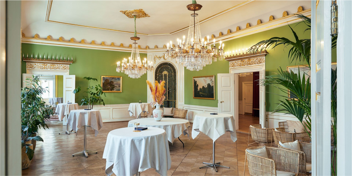 Venezia Salon, med sin italienske aura, er perfekt som velkomst-eller loungeområde, mens Grønne Salon emmer af historie og elegance, som er ideelt til eksklusive selskaber. Christian X’s to sammenhængende saloner tilbyder en mere intim atmosfære til private møder eller bestyrelsesmiddage.