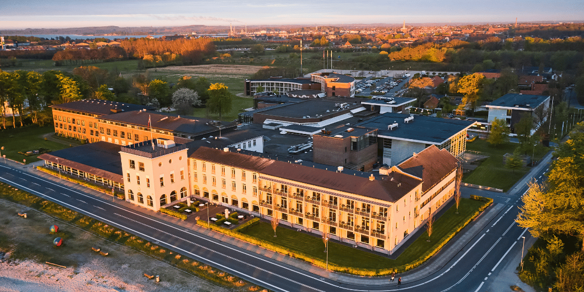Hold dit næste arrangement i naturskønne omgivelser midt i landet med gode muligheder for både privatbilisme og offentlig transport. Vi er placeret tæt på E20 og 14 minutters gang fra Nyborg St., så det er let at komme hertil fra alle steder i landet. Vi tilbyder også 600 gratis parkeringspladser og 56 ladestandere til elbiler, så dine gæster ikke skal bekymre sig om noget.