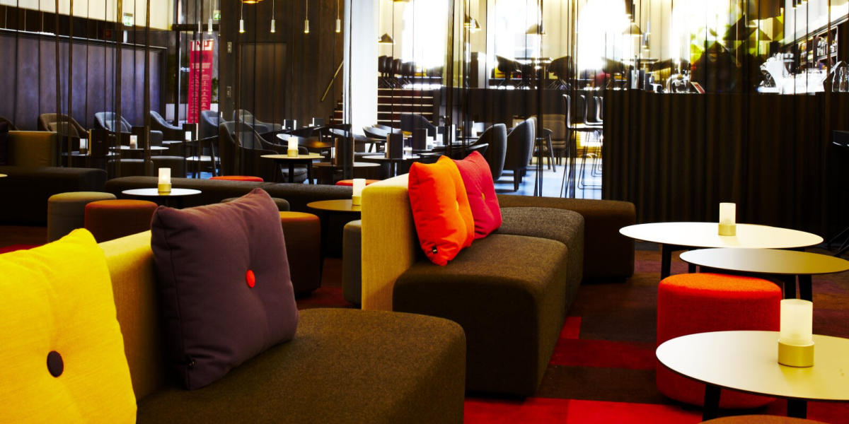For enden af byens egen regnbue, 100 meter frem og så skarpt til højre – her finder du Scandic Aarhus City. Hotellets atmosfæriske stemning og prisvindende design afspejler vores beliggenhed midt i Danmarks hyggeligste storby blandt historiske bygninger, moderne kunsthuse og charmerende, smalle gader. Stemningen er unik og rammerne er optimale til alle typer fester.