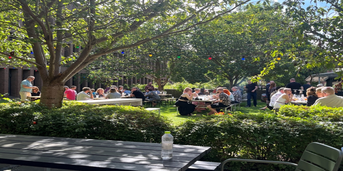 Vi har skabt ideelle rammer for socialt samvær og teambuilding i både Schiller Lounge og det udendørs haveanlæg. Loungen er velegnet til interne arrangementer og fredagsaktiviteter, hvor man kan nyde drinks og benytte spilområdet. Haven fungerer som en afslappet ramme for udendørs aktiviteter og frokoster i sommermånederne og giver gæster mulighed for at skabe balance og variation i mødedagen.