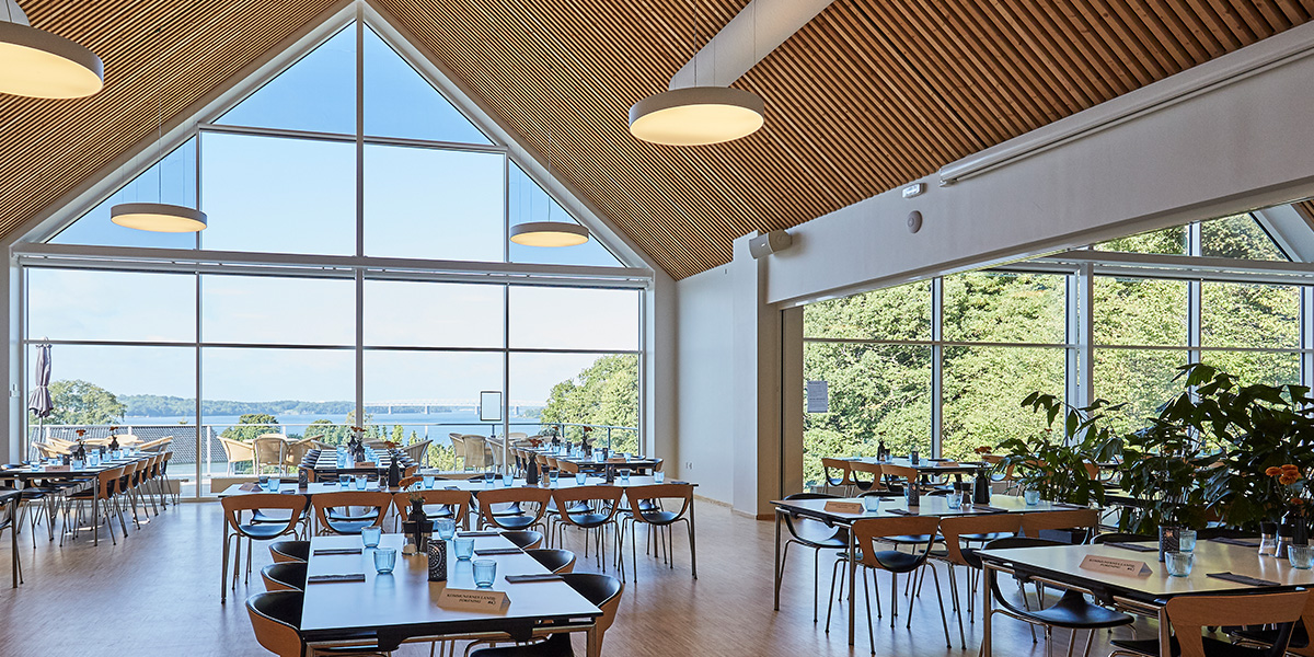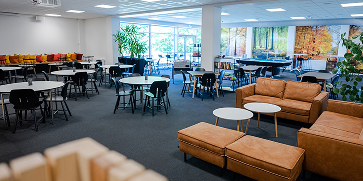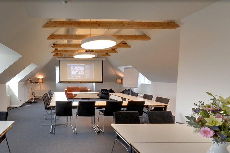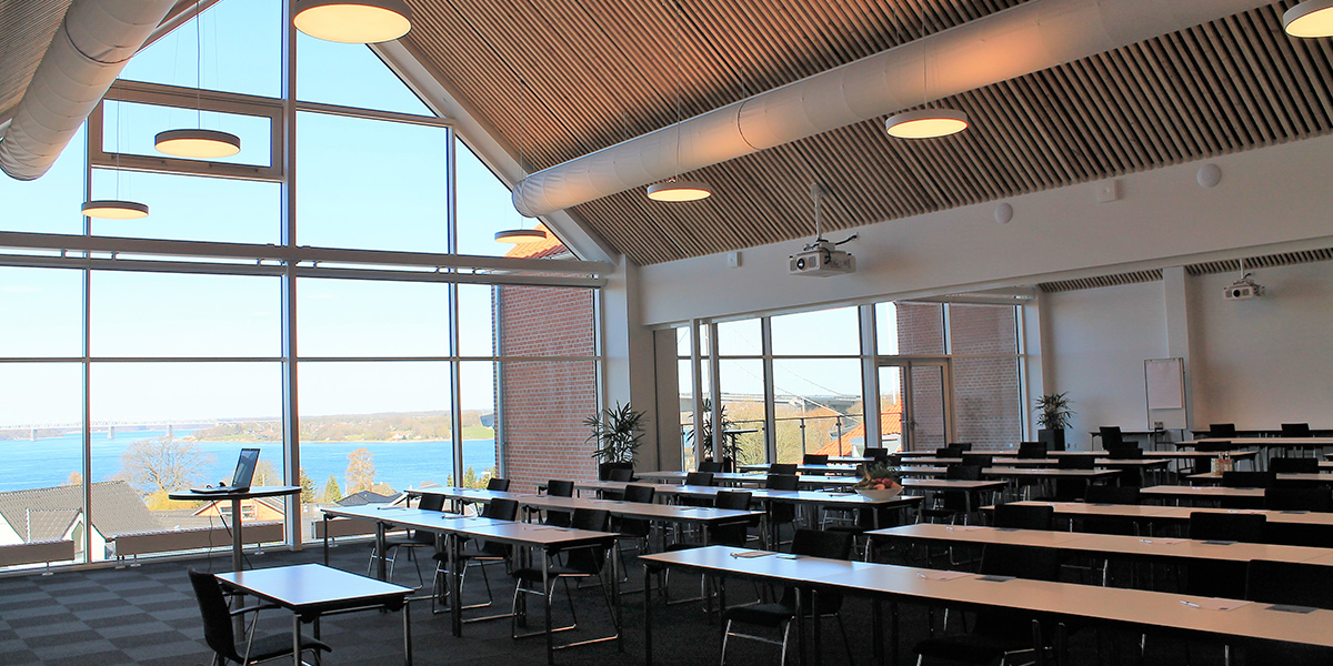 Vores lyse og moderne lokaler egner sig til både store og små arrangementer, og vores 11 grupperum ligger i god afstand fra plenumlokaler. På den måde kan I tilpasse jeres lokalebrug, så det passer til jeres arrangement. I slyngelstuen kan I udfordre hinanden i et spil pool, nyde kolde drikkevarer fra tillidsbaren, og i de mange andre pauseområder kan I netværke og socialisere med hinanden.