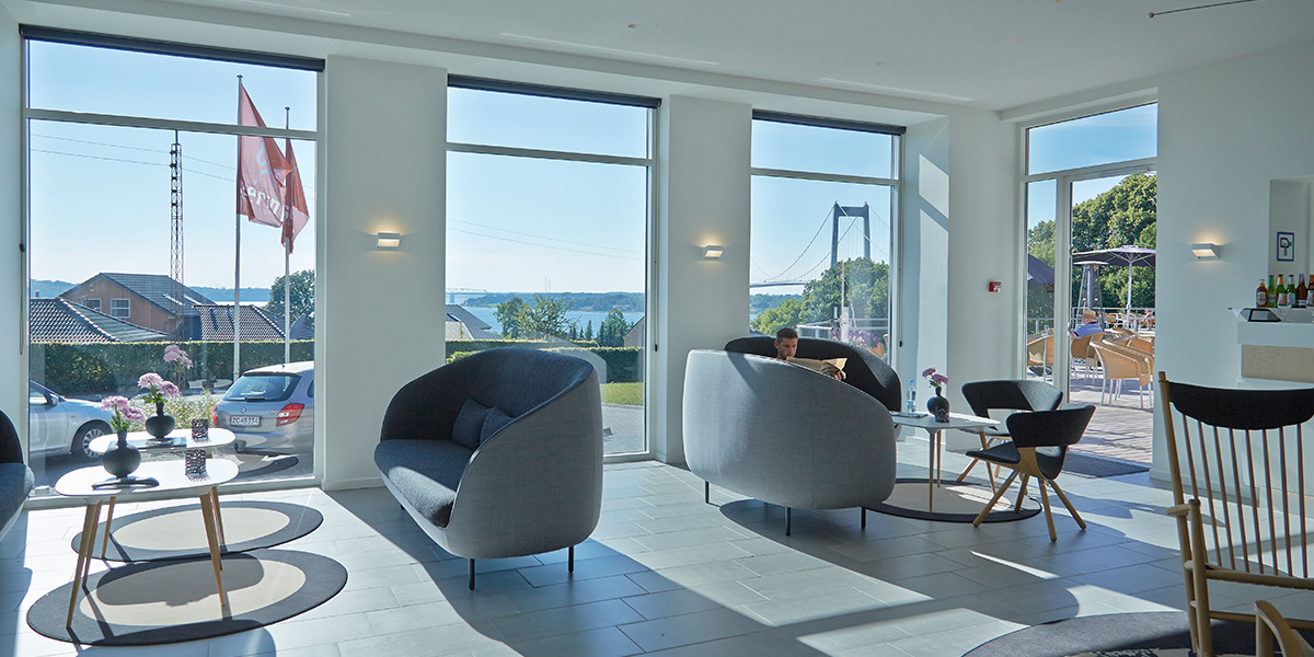 Du finder Severin 150 meter fra vandet, beliggende på en bakketop med skoven som nabo. Her kan du kan du læne dig tilbage, nyde den enestående panoramaudsigt over Lillebælt og de to broer – og trygt overlade resten til os.