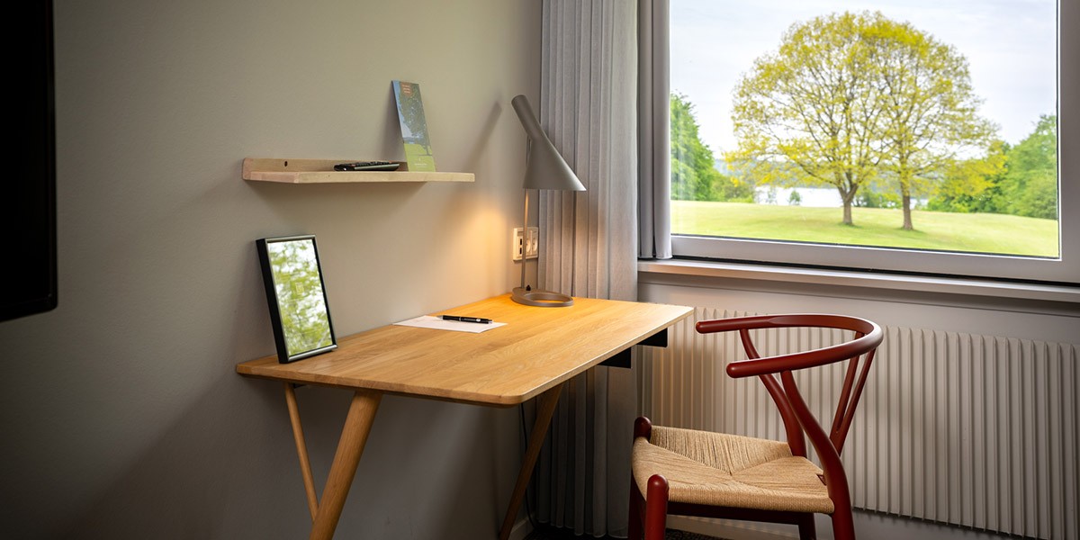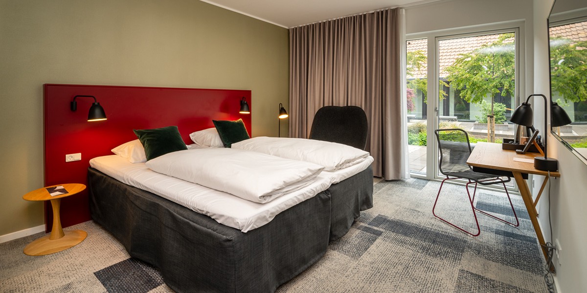 73 gæsteværelser med sammenlagt 112 senge. Alle vores senge er ekstra lange og bredde, og værelserne er nyindrettede, komfortable og med eget bad. På værelset har du mulighed for at lave en kop kaffe eller te, se tv eller koble dig på det trådløse internet. Flere værelser har udsigt til park og Skanderborg sø eller til vores mange hyggelige atriumgårde.